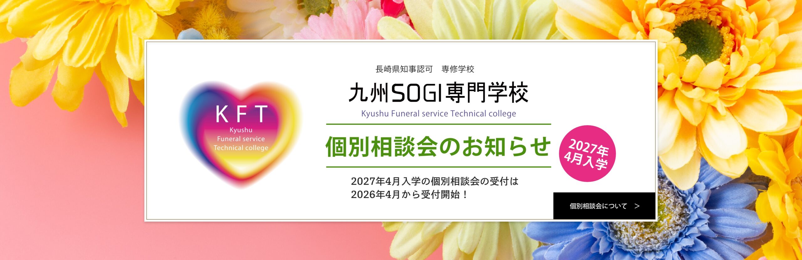 葬儀=「SOGI」、県内外からの学生募集を行うため「九州」とつけました。所在地は長崎県長崎市の光町。夜景で有名な稲佐山の登り口にある4階建ての校舎が当校です。学科名は「デュアルシステム科」、学生は1年間の集中座学講義と企業実習のデュアルシステムで実践的に学びスキルを会得。1人前の湯灌納棺師を育成するため「湯灌納棺師コース」と名付けました。